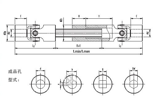 | GA | HA | 成品孔径 d | DH | l2 | C | Lmin-Lmax | B | a | b | Q | SW | D1 |